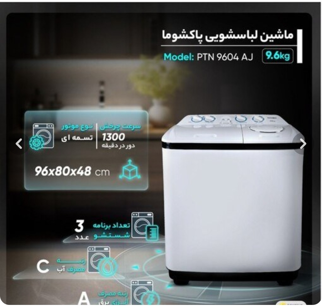 🧺 ماشین لباسشویی دوقلو پاکشوما مدل PTN-9604AJ ظرفیت ۹.۶ کیلوگرم