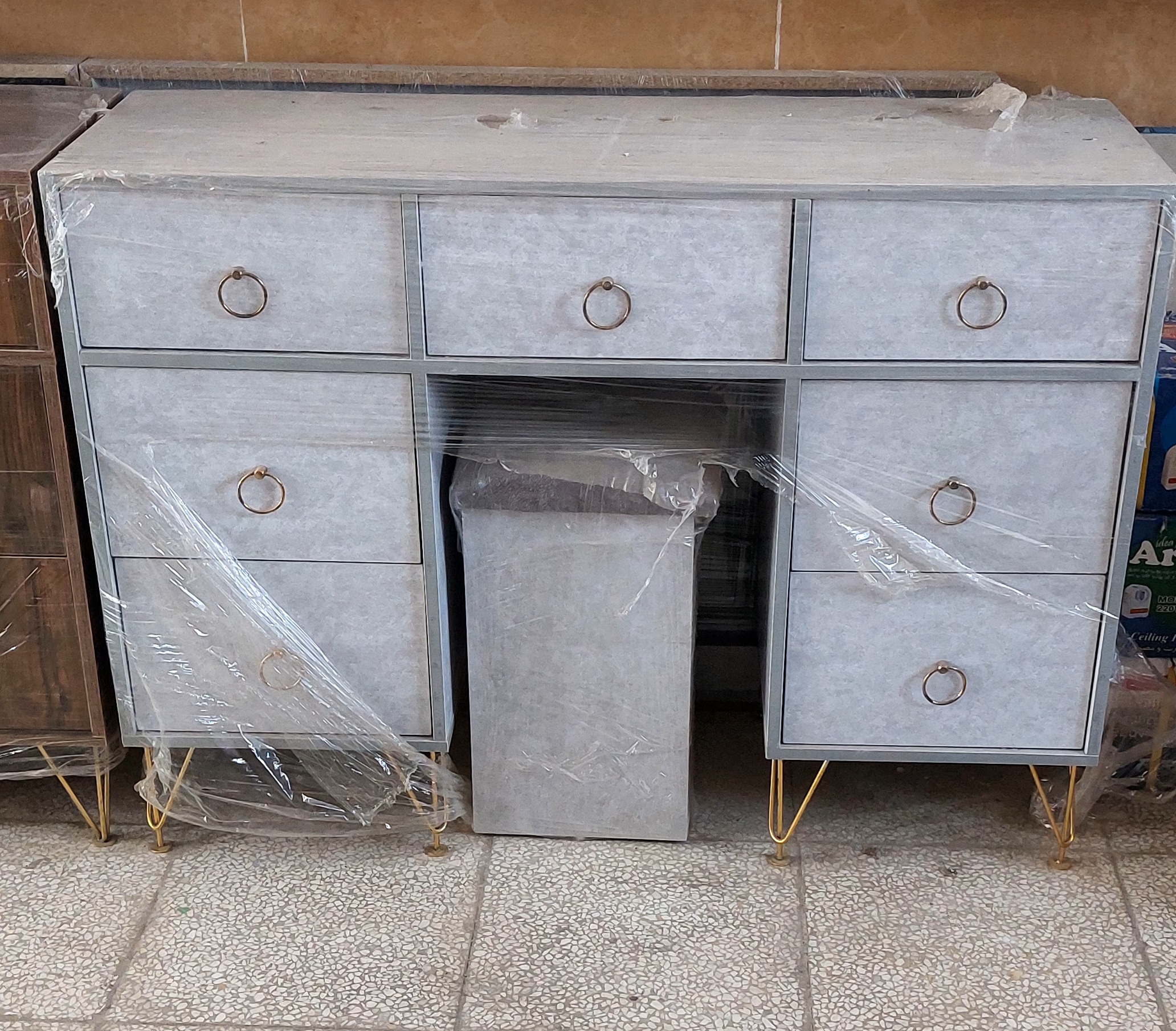 آینه کنسول مدرن ۷ کشو با پایه فلزی – MDF روکش ملامینه